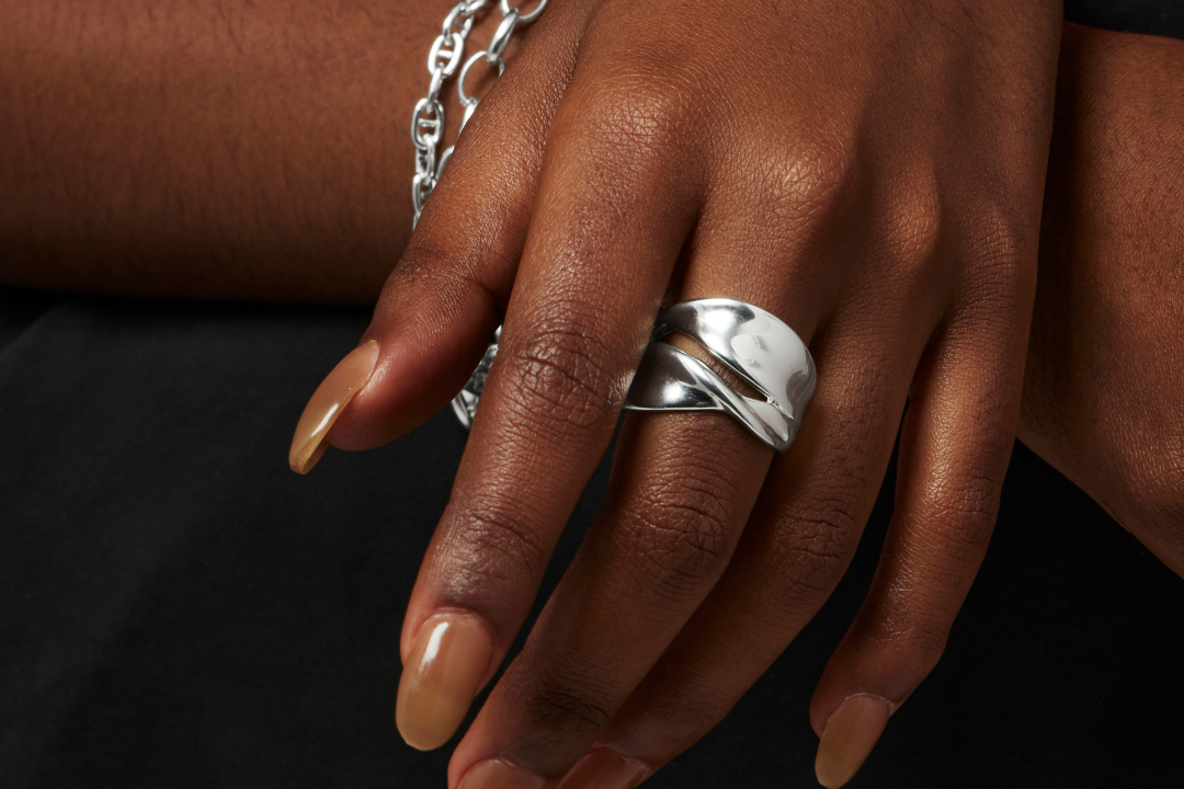 NAJO’s sculptural design aesthetic takes centre stage in our covetable large designer rings. These big bands make a statement and take up more surface area on your finger, so we recommend sizing up to ensure your designer ring fits snugly without feeling tight.