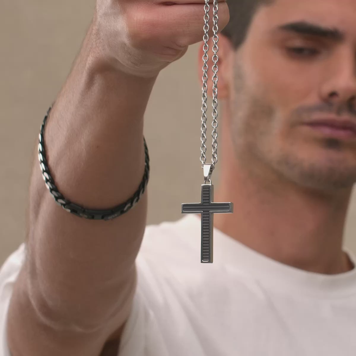 The Paladin Men’s Carbon Fibre and Steel Cross Pendant