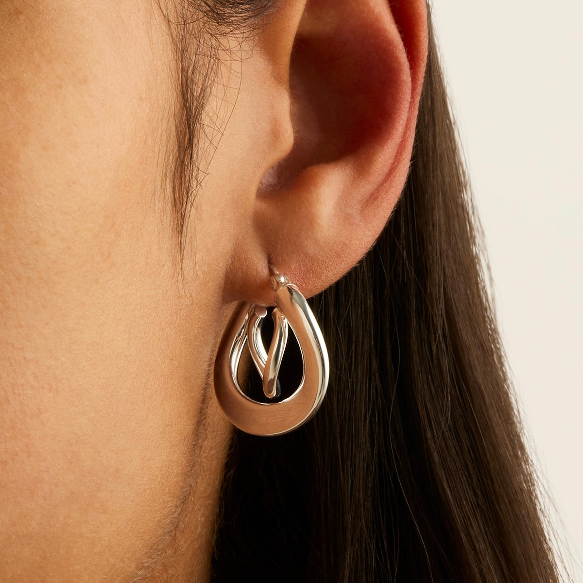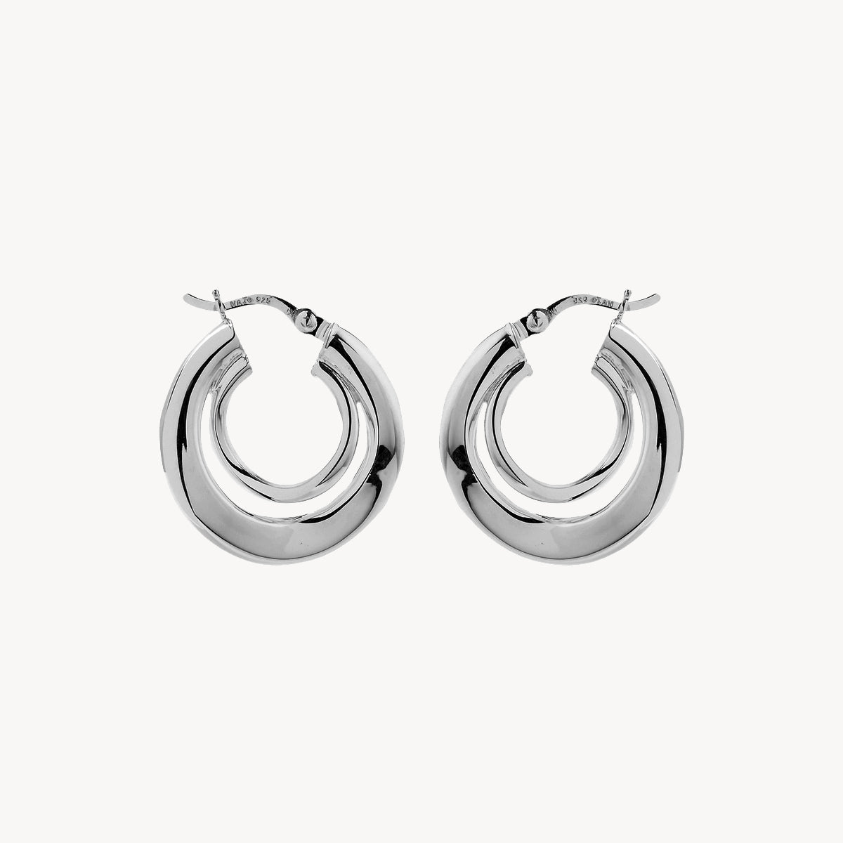 What could be more de-lightful than hoops that emit a silvery aura as you move? NAJO silversmiths have mirror-polished these double strudel hoops to ensure their glimmer never wanes. We love pairing these with a musical stack of radiant bangles.